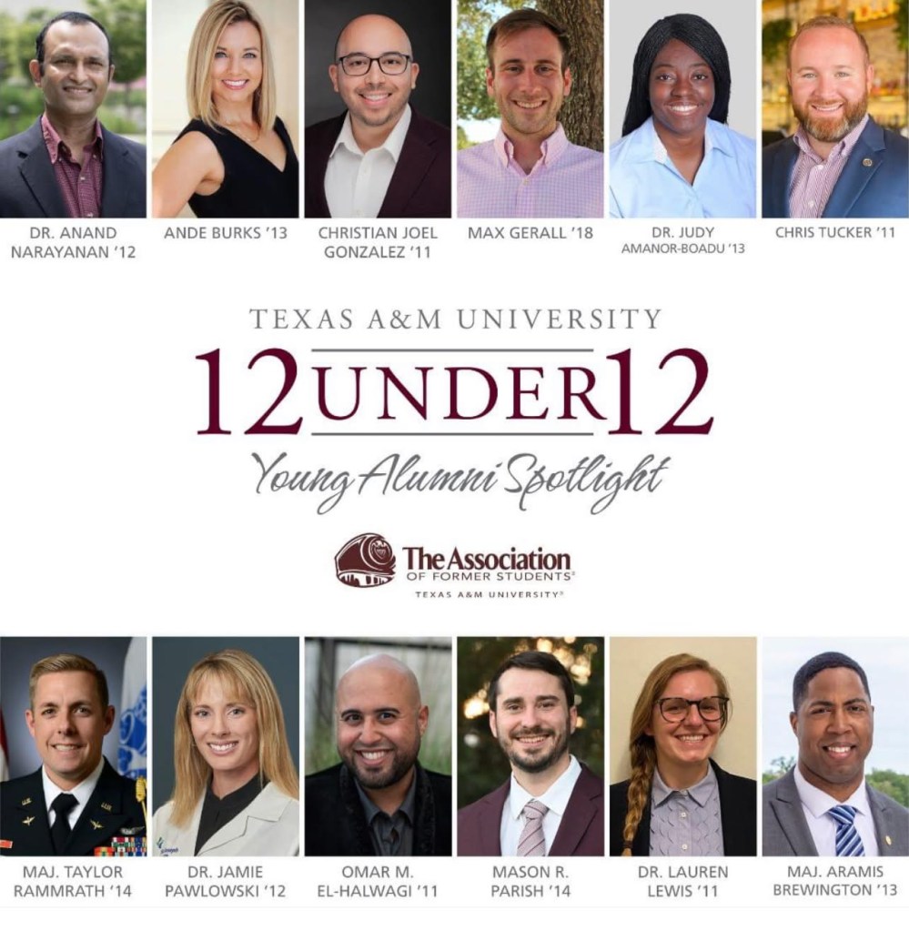 A respected voice among alumni leadership, she serves as an appointed Leadership Council Representative At Large for the Association of Former Students. Angela proudly supports and serves as an ambassador for helping with sharing the benefits of the “Pass It Back” campaign, helping to inspire fellow Aggies to give back and strengthen the Aggie Network. Angela has also served on the 12 Under 12 Young Alumni Spotlight Committee, where she helped select emerging leaders who are boldly shaping the future and representing the Aggie values.